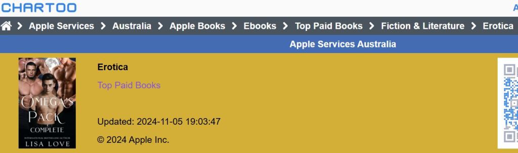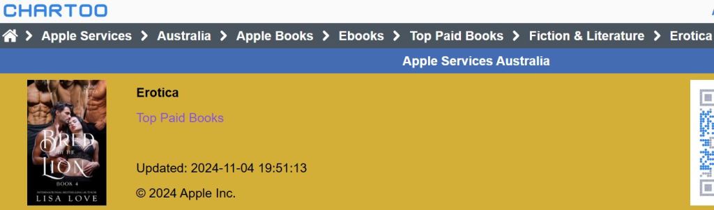 Nov 4: Oh my! I’ve another #1 bestseller over at Apple Books Australia, and this time it’s “Bred by the Lion 4″. Gosh! I’ve never seen anything like this before. Thanks again, Australia.